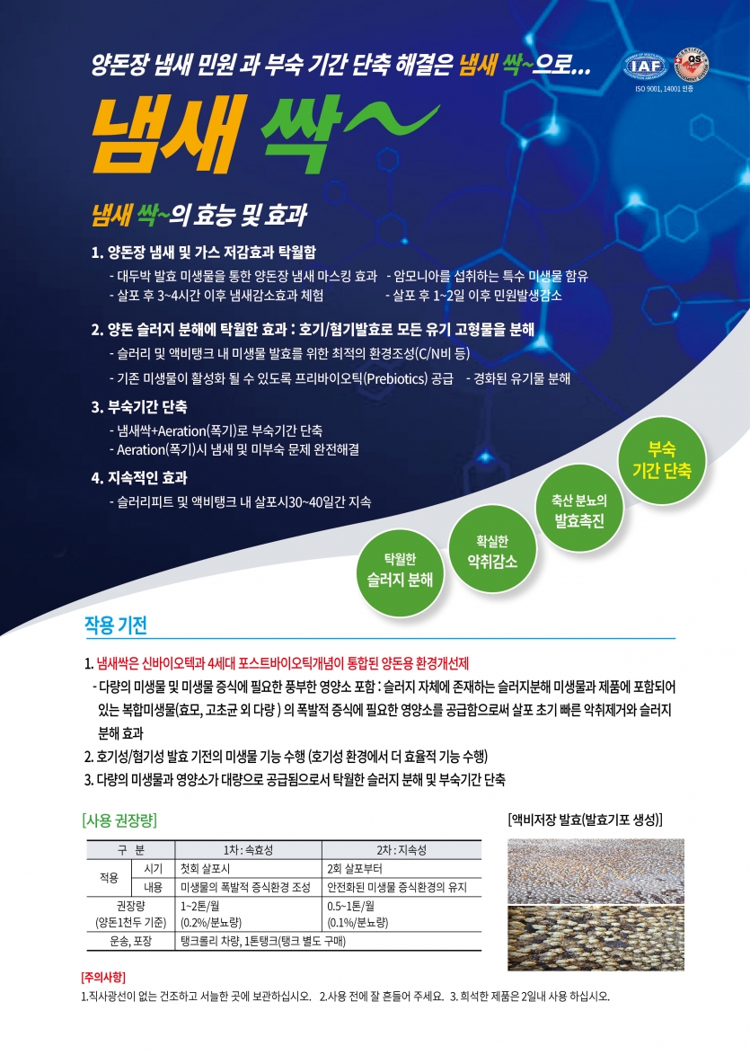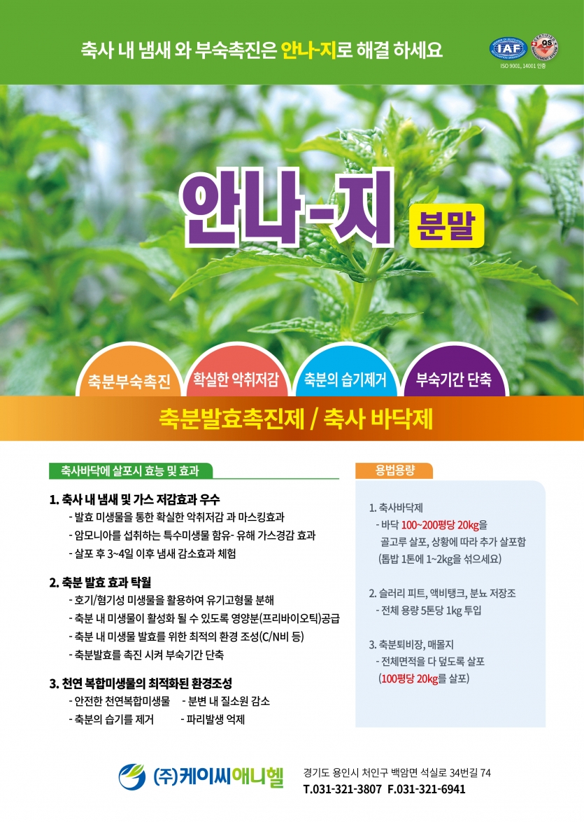 [축분발효촉진제, 축사바닥제] 안나-지분말(20kg/포), 냄새-싹(20L/통)